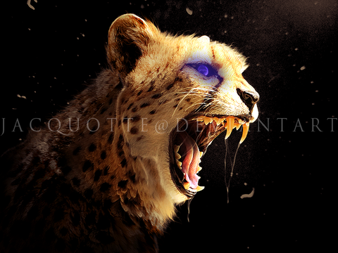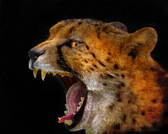 Úžasné! Z pôvodnej fotky si spravil neuveriteľne dramatický obraz. Aj keď póza už bola dramatická, podarilo sa ti ju ešte vylepšiť prenikavými farbami a "nabrúsením" tesákov. Výsledku môžem len tlieskať.