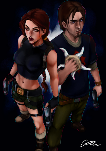 Ich mag das Shading hier. Vor allem bei den Haaren passt es super! Bei Lara die Strähnen... Ich schaffe es nie Haare simpel und doch klar als Strähnen darzustellen. Das hast du hier super hinbekommen! Und Laras Lippen auch. *__*