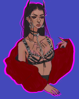 #bats #batwings #bdsm #choker #crucifix #digitalart #digitalpainting #furr #gothic #harness #horns #imvu #sai #imvuart #redfurr #xmlbx #darkart #red