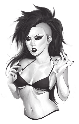 #collars #knives #pentagram #portraitpainting #pvc #realistic #shorthair #instagram #xmlbx #pvcjacket #bellaliste #blackandwhite #photography #realisticpainting #whitehair