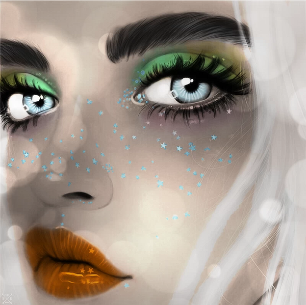 #artwork #egirl #imvu #moon #secondlife #softshading #stars #nugoth #blondehair #digitalpainting #myartwork #imvuavatars #saipainttool #clipstudiopaint