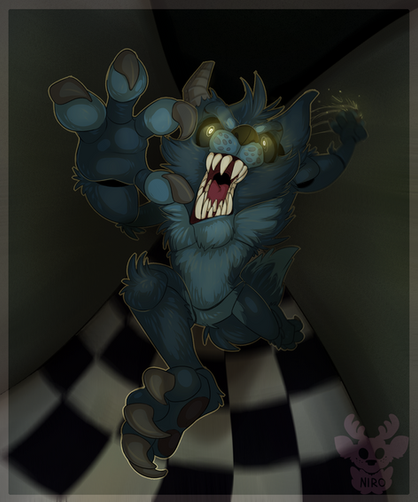it actually kinda looks like nightmare bonnie, but blue and with different features. i am NOT saying it is nightmare bonnie, cuz i know this is his fan oc. i am merely pointing out the similarities.