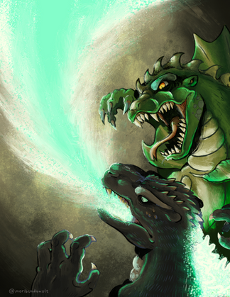 Godzilla: "It's bad enough that I have to hang out with this joker, but did he have to bring his girlfriend along?"
