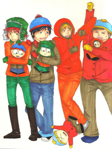 This was such a pain to do, but so much fun. They take for ever, but I love drawing big groups.Here we have (on top L to R) Tweek, Token, Craig, Wendy, Stan, Bebe, Kyle, Clyde, Cartman, and (on bottom L to R) Butters, Red, Pip, Kevin, and Kenny. I wanted to fit in more of the kids, but I kinda ran out of room.