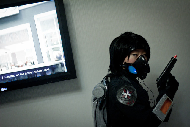But oh no no no.......this fabric was hell. It was so thin, it would not sew and glue did not worked because the vinyl would rip off. So after getting totally frustrated with this, I sandwiched two strips of satin over every seam. Which unfortunately, made the suit a bit bulky and a pain in the ass to sew. The gloves especially. Well, after finishing the suit, I procrastinated on finishing the thing and ended up half assing the emblems 4AM in the morning on the day of the convention. Sorry Samus! :0