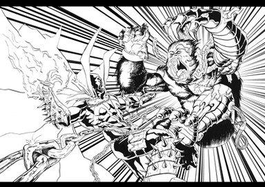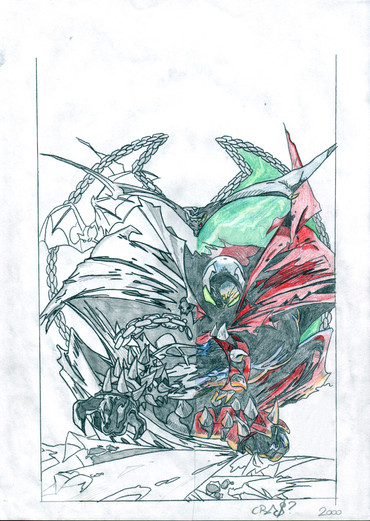 Spawn vs CygorPencils and collor pencils on paper (25x35cm)