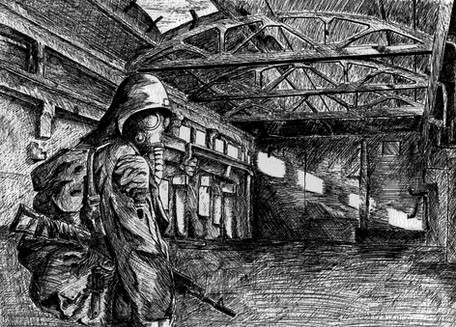 #1986 #ak47 #chernobyl #chopper #decay #doomsday #duty #fanart #freedom #game #gasmask #gsc #hind #landscape #maarten #npp #nuclear #postnuclear #radiation #stalker #ukraine #urban #zone #pripyat #bretveld #pencildrawing