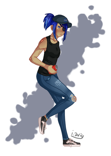 but the way the jacket goes, it wouldn't hug her chest that much if it isn't skin tight. since the jacket's open, then the cloth is loose, and the jacket would be more relaxed. her left thigh looks a tad short, and the line on her shirt makes it look like her chest is caving inwards, like there's this giant cavity there. her upper left arm is a tad long, if you move the elbow closer to her, then it should be fine. oh, and her ear is a tad too high.