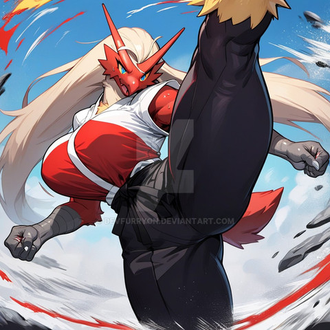 #blaziken #nudefemale #pokemonfanart #whitehairgirl #highkickgirl #snorlaxpokemon