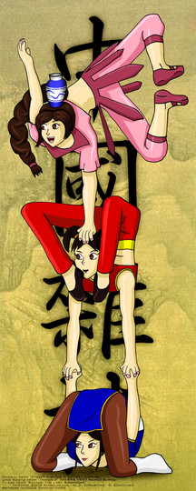 Once again, amazing contortion art xplotter ! This pose is probably improbable to perform irl, because Chun-Li's torso hanging out to thr side throws off her centre of balance, and on top of that she's supporting the weight of another fully-grown girl. But hey, that's what makes it so amazing to witness! And besides, if anyone can pull that off, by gum, it's Chun-Li!