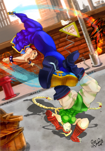 Truth! Plenty of artwork around here that shows how flexible Cammy is! It occured to me if Duendecilla is anything like Lord of the Ring's Legolas shes probably light on her feet as well as weight, Chun-Li could hold her up for hours, Poking fun at each other....