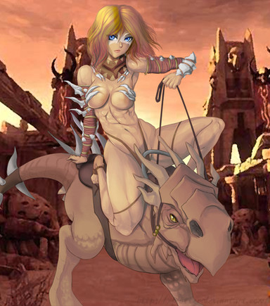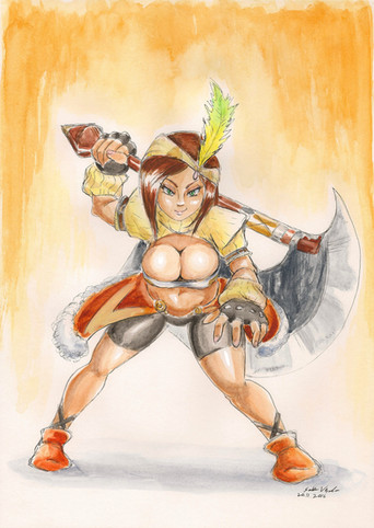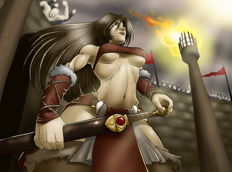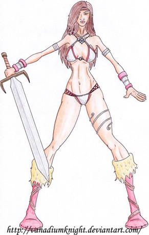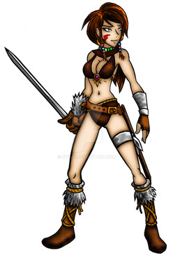 Great work on the barbarian/tribal theme for the girl here, getting a good pose and some nice perspective wasn't enough check out her skimpy wear, yowza! Lets hope its windy today on the battlefield, lol.