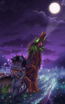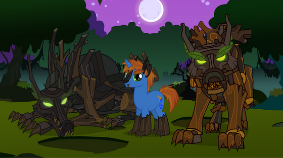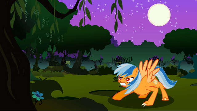 I'm currently on holiday and have plenty of time for vectoring stuff like this, since it's all this ancient laptop is good for. Luckily DrawPlus X5 is pretty well optimised, enough to run faster than Chrome most of the time.Anyway, the Timberwolves from the latest MLP episode (Season 3, Episode 10) were kind of awesome so I traced one and added a background made from scratch. Well, almost; the moon is a vector from a Luna Tumblr somewhere. I'm quite pleased with this as a whole, except for the big blank space on that tree. Maybe I'll add some more detail later.