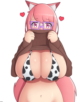 #anime #cute #girl #glasses #oppai #barefoot #bigboobs #bigbreasts #blushing #cutegirl #foxgirl #girlswithglasses #glassesgirl #hugeboobs #hugebreasts #kitsunegirl #meganekko #nailpolish #nopants #originalcharacter #pinkhair #pinkhairgirl #sitting #thighs #blushinggirl #kitsunemimi #barefootgirl #looking_at_viewer #thickthighs #oversizedshirt