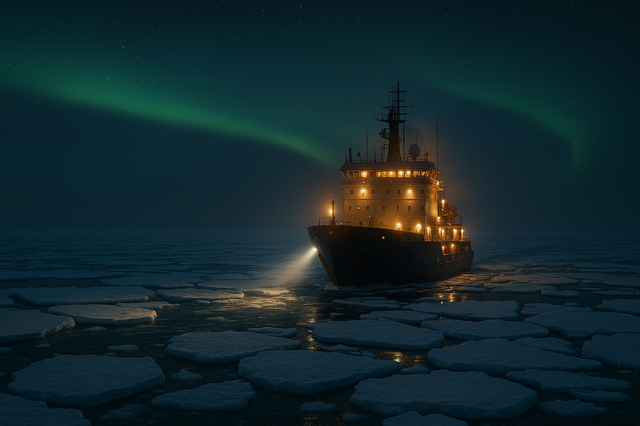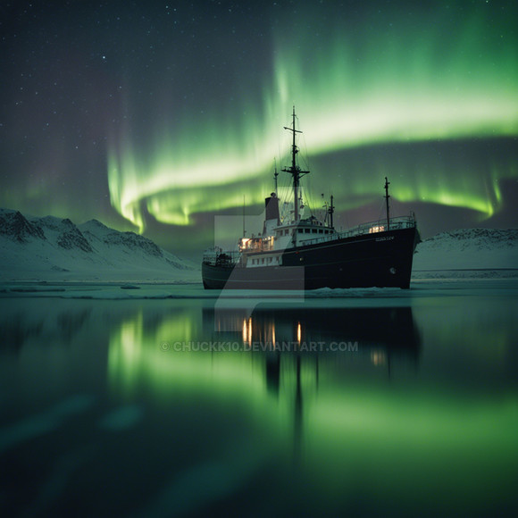 #night #sea #ship #snow #alone #aurora #auroraborealis #polar #russia #winter #winterlandscape