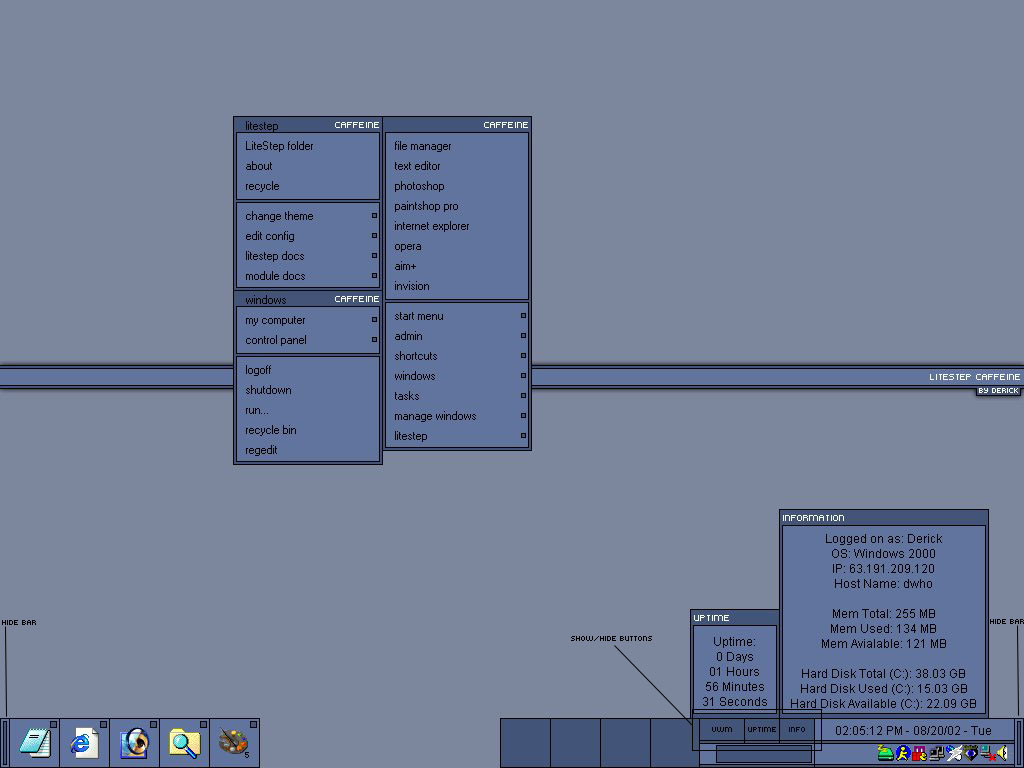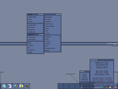"not another osx look-a-like" But this one's for Win98! The popups and the VWM is transparent, and the tasks can be accessed by clicking the top right corner to give a transparent task list.Made using LiteStep [link]