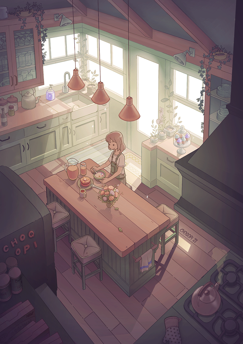 Just making lunch with sleepy kitty.I worked so long on this piece, wanted to achieve a cozy, lo-fi ambience. I will be uploading the speedpaint process on my YouTube soon!