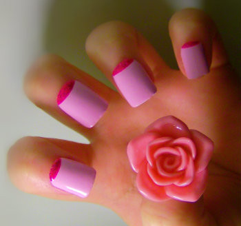 used: Sally Hansen 460-Wet CementWet N Wild- 402 Tickled Pink with Kiss nail art in SPA21 Beach Pink