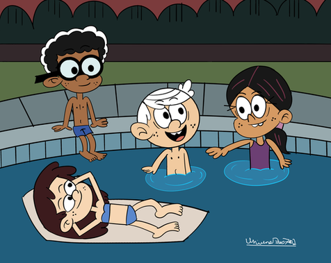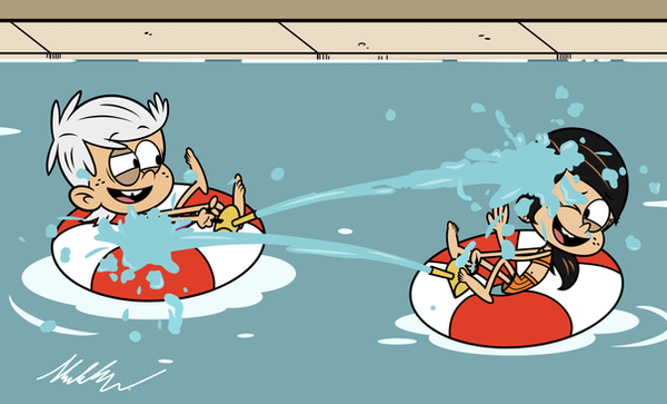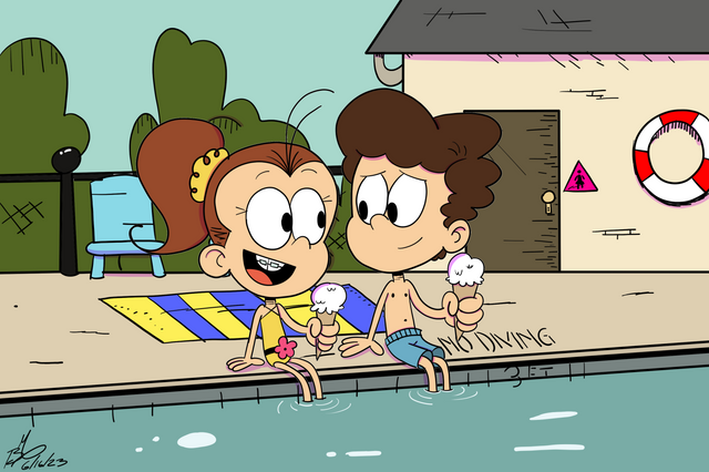 Colored Sketch commission I did for CourtlyHades296 with Lincoln and Ronnie Anne in Girl Jordan's Pool.Lincoln and Ronnie Anne (c) The Loud House