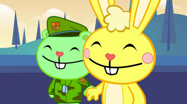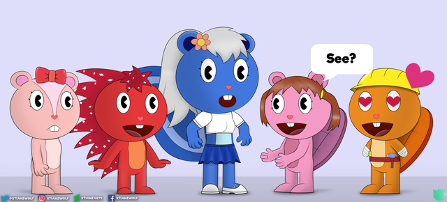 alright can u draw russle/mime/handy and flippy in the same picture (normal flippy) plz