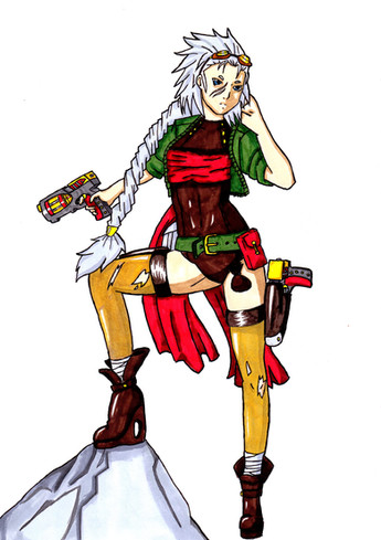 Eventually, Metallia runs into a Humanoid Bounty Hunter *has yet to be named* who actually showed her compassion by not destorying her b/c he had witnessed her save a small child. Althou it is revealed that she no longer poses a threat to mankind, he still can not trust her. Eagerly he watches, waiting for the day the 'goody goody' act wears off and he can finally annihilate her.