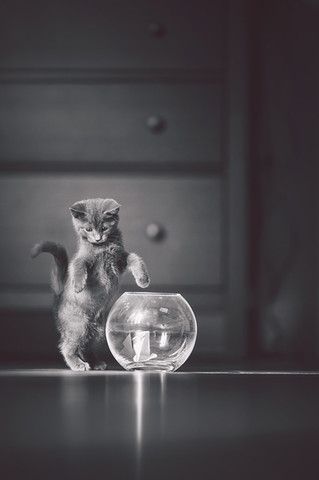 Absolute adorable. The fish is so terrified and the kitty's like "but I just wanna be friends...".