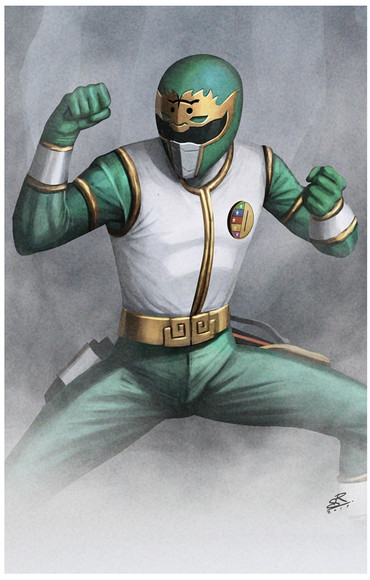 Trek, the Suoersonic Green Ranger. Art by me. As @boomstudios still hasn’t released a design for his helmet still, it took some figuring out to get a design that represented six but looked good. The other day when I started this it was because I was hoping @boomstudios would make some kind of comprehensive cover that would be like the Forever covers in past years. Got my wish, sorta, but the new cover for 106 is incomplete and lacked any of the comic Rangers #fiveman #powerrangers #supersentai #ファイブマン #スーパー戦隊 #theartofxRelated content