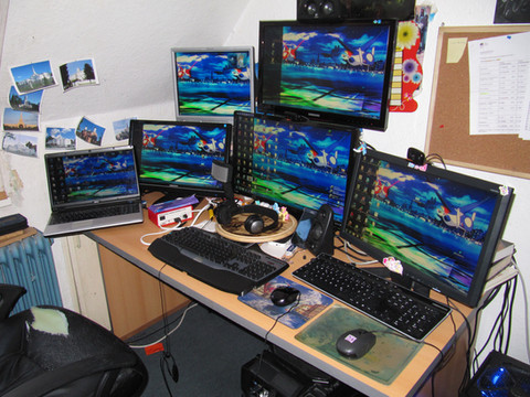 my Super cool PC system !!5 monitors one Laptop,