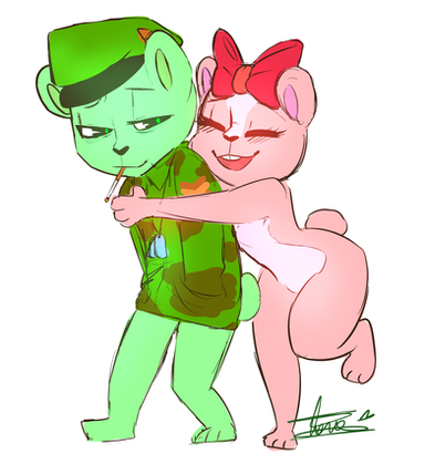 Flippy x Giggles!!!!!!Yeah,I am still into this fandom and still shipping this two.Coz,wynaut?XDFlippy and Giggles belongs to MondoMedia