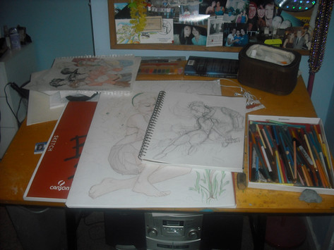 My working space is always clean, due to the fact it's always in school. I have been in the library coloring once, and it was a disaster cuz I had books on shading and colored pencils everywhere...