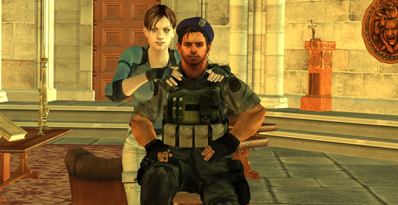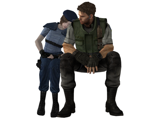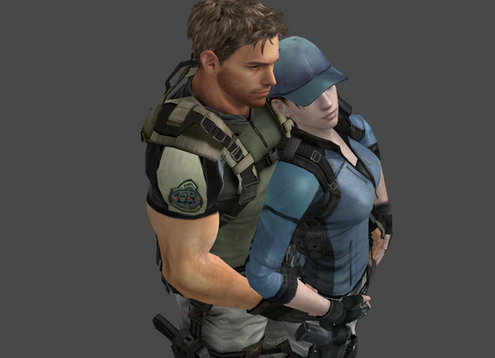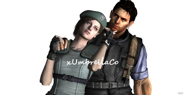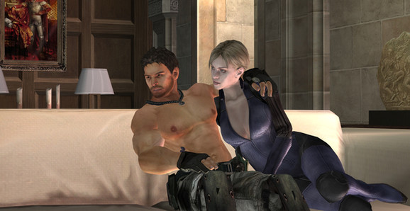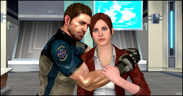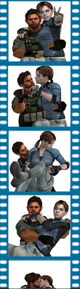 you could make it like leon and claire are drinking cocktails then chris is spying on them and he's with jill
