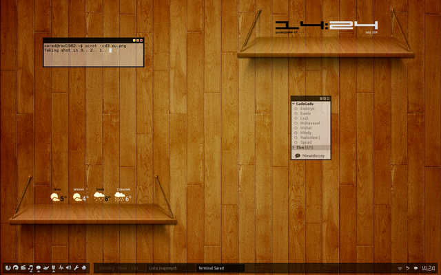I really dig the way the desktop image works with the images that power up all the xwidget functions. Also, it's peacful (if you ignore the rotting floorboards) heh. Nice job!