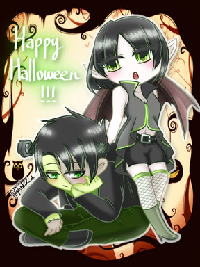 Something Halloweenish XD Yep Nocturne is a bat and Vortex is Frankenstein.I love Halloween so hard it's my favorite holiday EVER