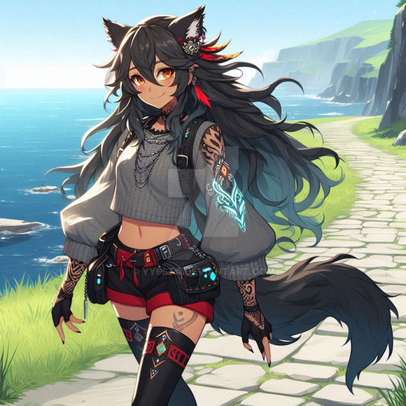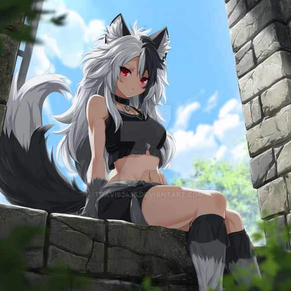#animal #anime #blue #brave #cold #creative #digital #drawing #ears #fantasy #fur #girl #illustration #majestic #manga #mountain #silver #snow #strong #tail #white #winter #wolf #art