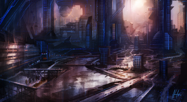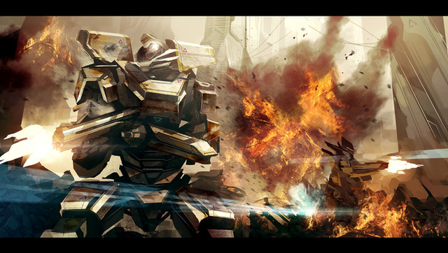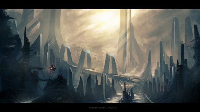 Great sense of motion in this, the perspective is helping that. Love your background colour values as well