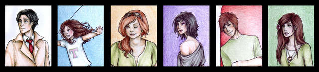 I had a bit of free time today so I did this quick sketch of the characters (what i think they look like anyway) from the book MAXIMUM RIDE by James Patterson. I have the first and the second one and I'm hooked with it like my sister on her HP books..heheThis is just a quickie sketch and i haven't added their wings yet... anyway, their names are (L-R) : IGGY, GASMAN, FANG, MAX, ANGEL, and NUDGE.