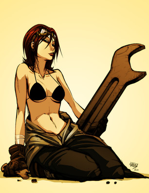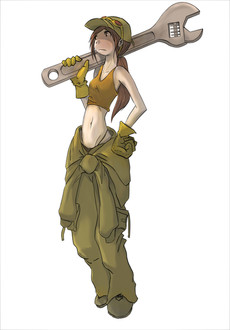 Just messing around with a different-ish style, I guess. I was torn between which categories to post this under. I wouldn't really call it manga or anime, but...I guess that was the inspiration? *shrug* Also, the wrench-thing is a work in progress. This was intended to be a concept character design for a 2D platformer. Why didn't this end up in a game-art category? Because the game will probably never be made... <_<Related content