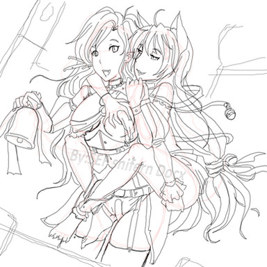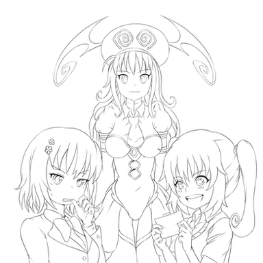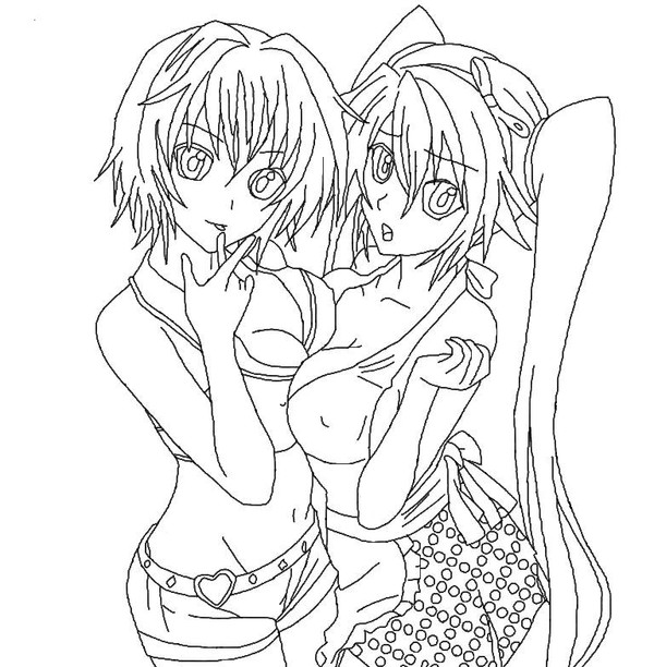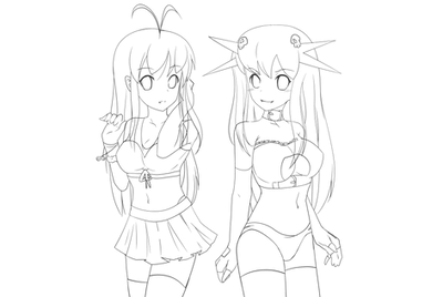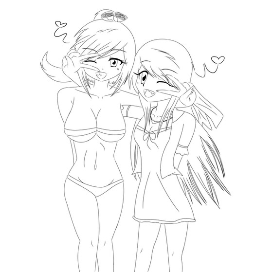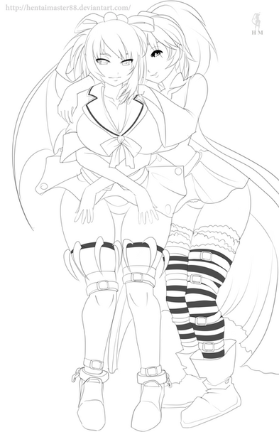Hey guysthis is a lineart of Homura and RIn from Senran Kagura, its from an offical Artwork of this franchise