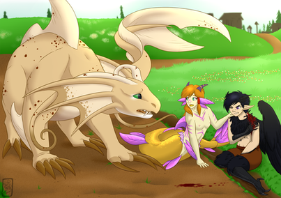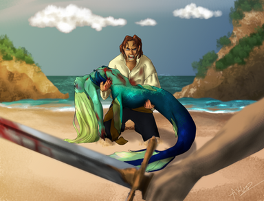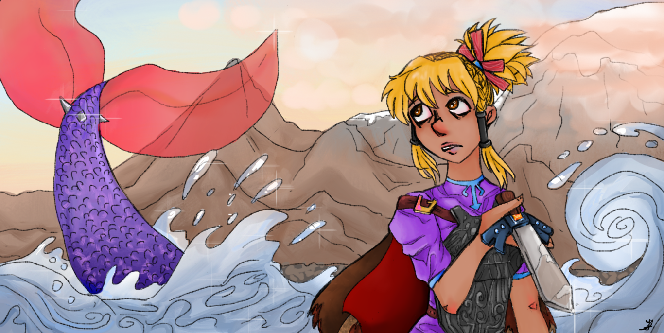 It turned out more bloody than I thought xD' But well, Zale is really badly injured after the fights with Zants Shadow Beasts. (More info in his sheet!) Meena finally finds him in the Upper Zora's River and calls her sister for help. I think their older sister Iza helps them too, because she lives also close by and a Zora like Zale is quite heavy xD They bring him to the Fishing Hole and take care of his wounds.