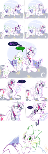 Spike:Hey guys what ya'll doing?Isn't it time to nap?*Walks in and open the door with tiredness**Sees what he should never see though the door*