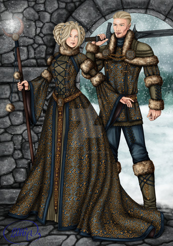 * The Dragonborn is a Nord (mage) called Nenni but she got really fed up with all the blue-eyed-blonde jokes so she dyed her hair red with a complicated potion she created herself using nothing less than Briar Hearts... and Bishop is only too happy to provide his wife with more Briar Hearts... and Cael ain't too happy about that.