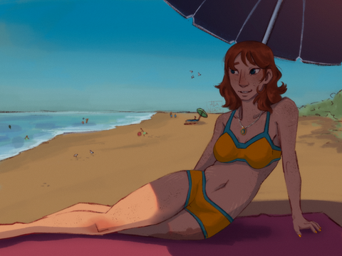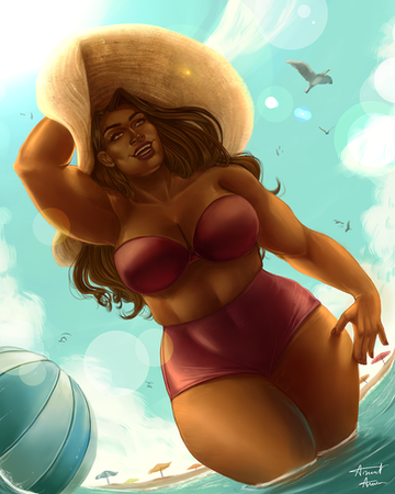 #beach #bluesky #brownhair #fullbody #girl #ocean #sand #sunbathing #tanning #water #wavyhair #tannedskin #beachsummer #beachbikini #girlanimemanga #tannedskingirl