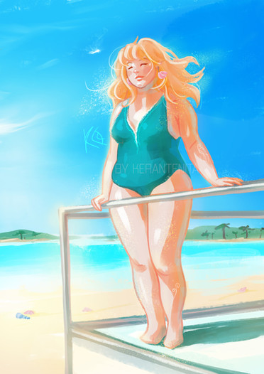 I think you all know how much I love the beach. It's a seriously deep connection, and from what I've heard, lots of people feel like this around water. So I went to the beach one of this days and it inspired me to make this piece! It's also sort of a OOTD, since my new swim suit looks like this and I kiiinda look like her, too haha