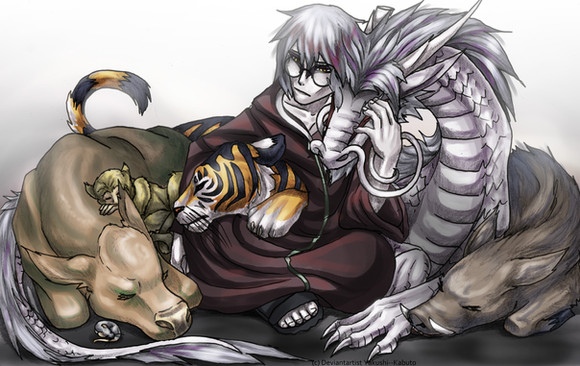 Wow that is beautiful!!!!! Not only are you great at drawing Kabuto and Orochimaru, YOUR EXTREMELY AMAZING AT DRAGONS!!!! Your talent is extremely amazing!!! Keep it up!!! *hug*