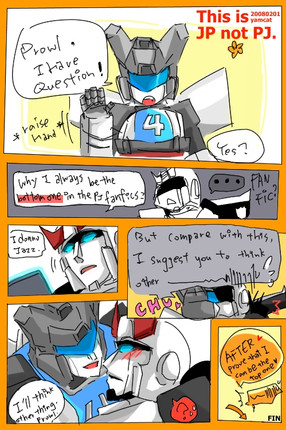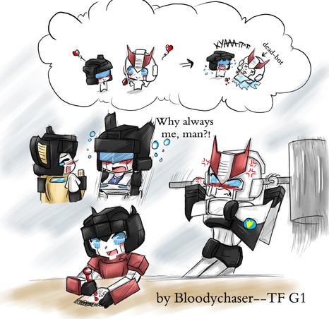 XD the devestation on poor Hotrod's face in the second panel is priceless. XD meeeaaannie Magnuusss... poor guy has such a squishy spark/heart!