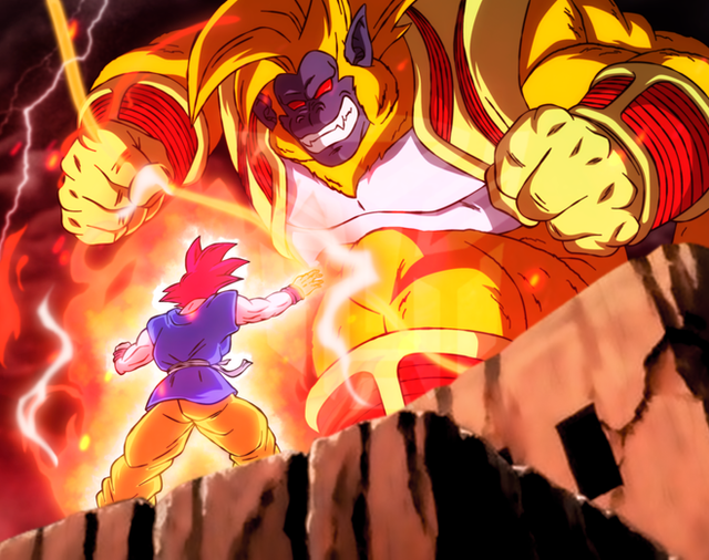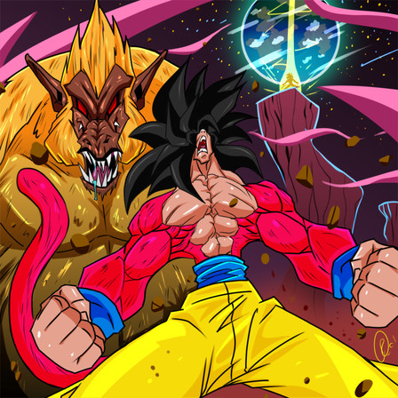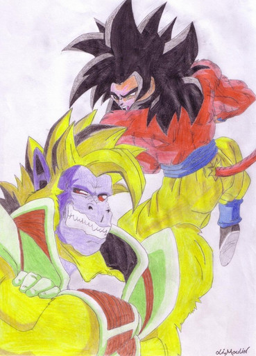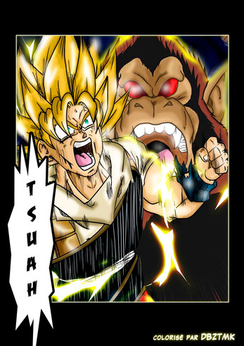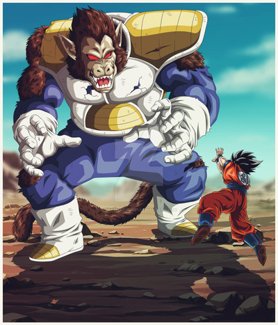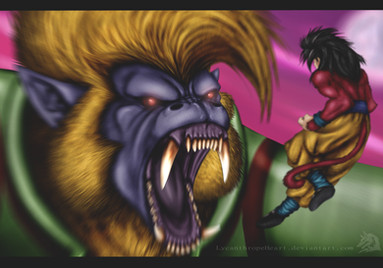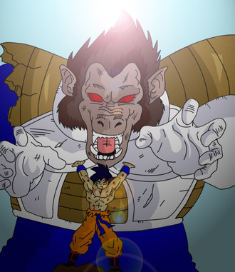 I hate Dragon Ball Z but I have to admit this picture is proper awsome, I like the look on that super sayan monkey pretty cool.