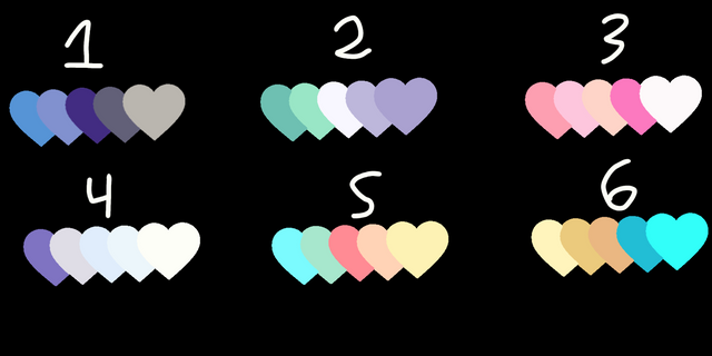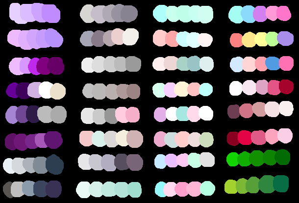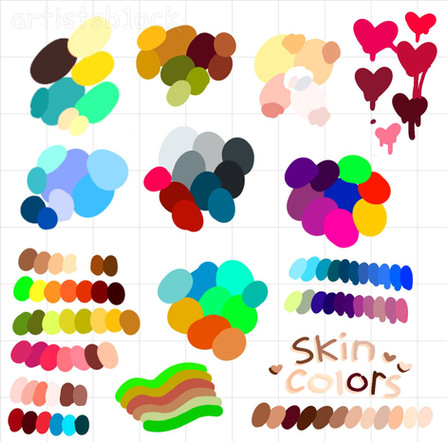 3. Up to the left are the same colours that is down to the left but with a multiply layer over them, and what colours I often use on multiply to make it look soft.