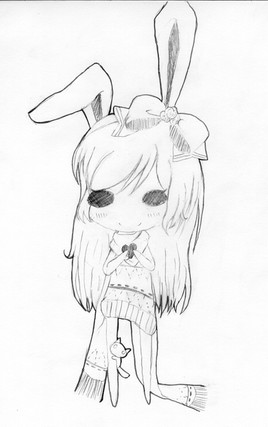 Aw she's adorable! I like how the thread an her hair both have an easy flow to it. Also her bunny is a lovely touch. Buttons <3
