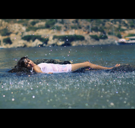 this is just beautiful. i love the scene and the water splashing and her pose and emotions on her face. just lost in the moment. beautiful morning wake up. would love to have this picture on my wall ..its very peaceful! Good job!!