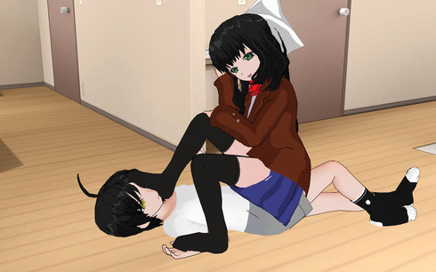 One day, there was a man named Spar who wanted to peek at female students who were about to change clothes in the school locker room. When he entered the women's locker room, he saw the locker room was deserted. But suddenly the dressing room door was closed. Spar was shocked and confused. who closed the door. he walked towards the door to open it. suddenly from behind someone pulled him to fall to the floor. Apparently there is a female student there named Ira. Ira looks very wet with sweat and smells. the smell filled the locker room.Ira: What are you doing here!?